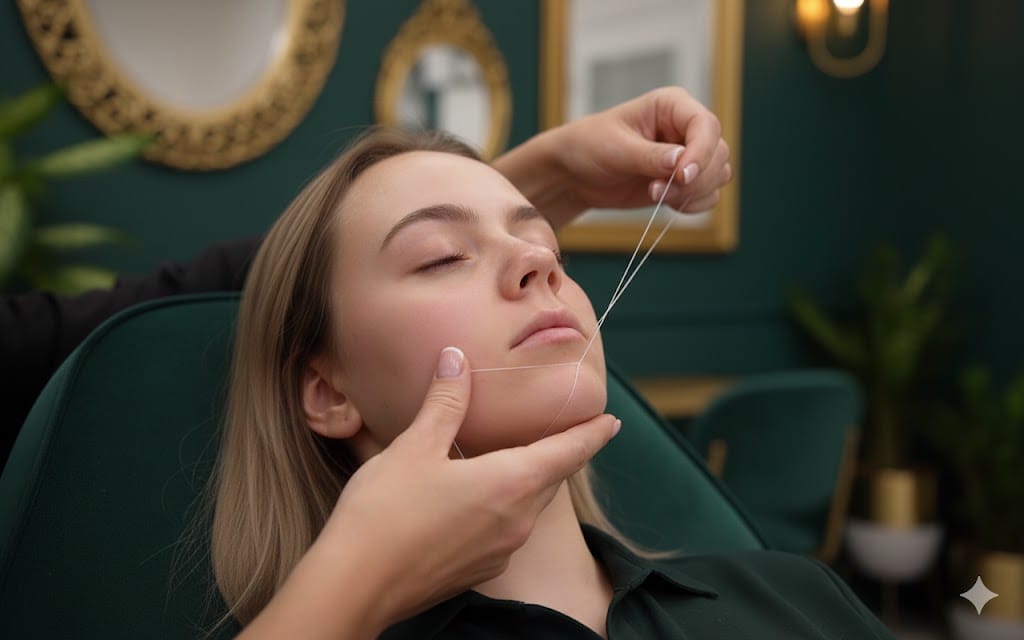 Chin threading is gentle, precise, and provides long-lasting results for up to 2–4 weeks.